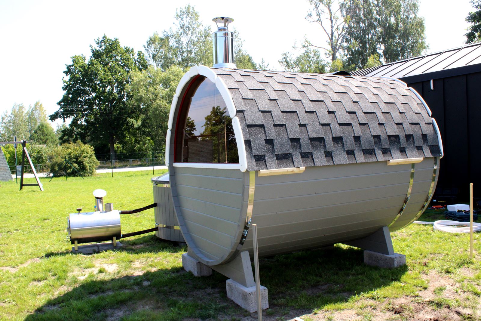 Pateicoties nelielajam svaram varēsiet pārvietot savu mucveida pirti tur, kur nepieciešams.